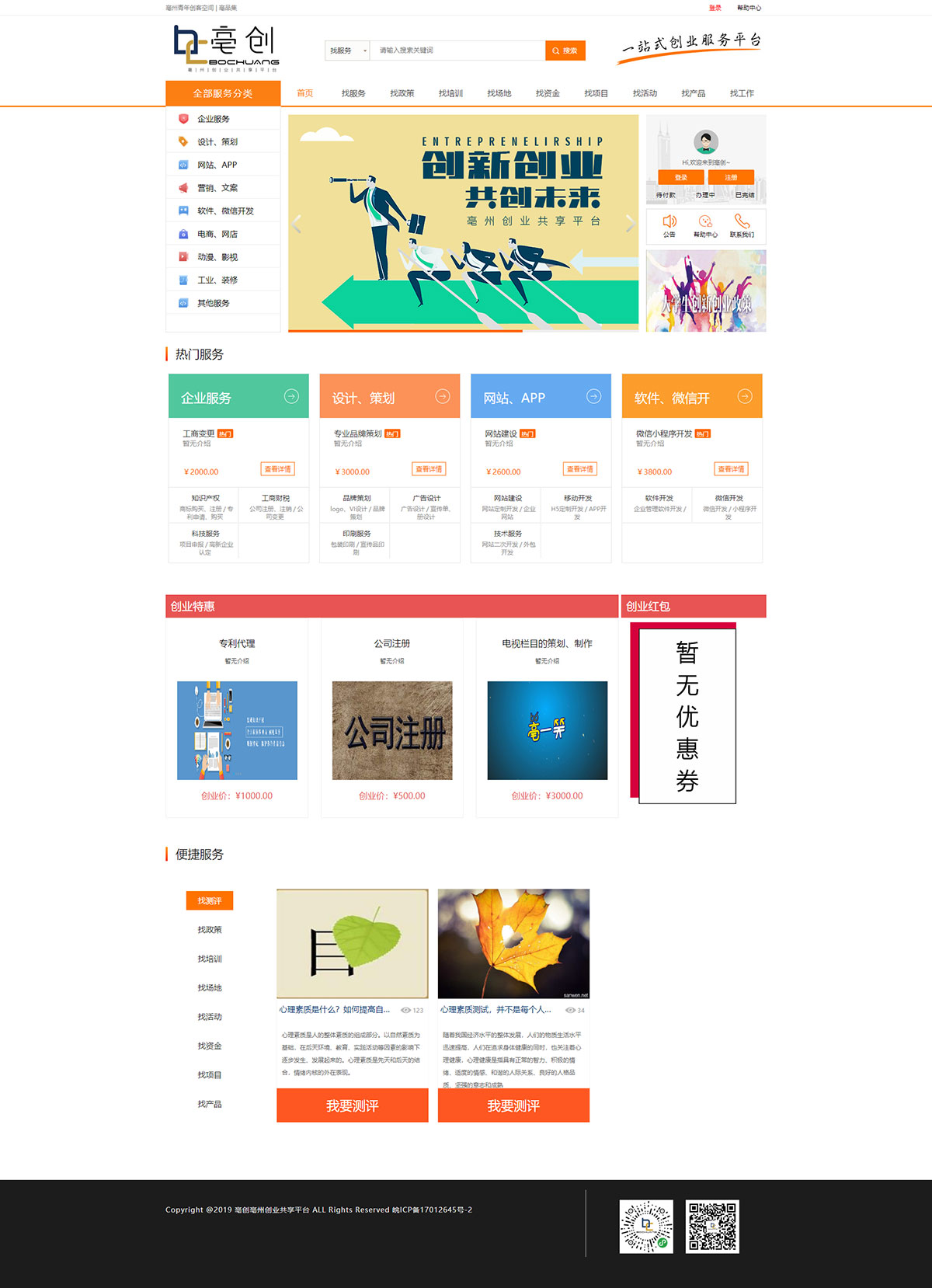 針對(duì)創(chuàng)客所需商業(yè)服務(wù)、創(chuàng)客項(xiàng)目資金(補(bǔ)助)申請(qǐng)、企業(yè)在線服務(wù)的綜合性創(chuàng)業(yè)、孵化、共享平臺(tái)。集合各類創(chuàng)業(yè)服務(wù)商的資源,將行政、融資、營銷、人才、商業(yè)服務(wù)等基礎(chǔ)領(lǐng)域在內(nèi)的多項(xiàng)能夠扶助創(chuàng)業(yè)項(xiàng)目快速成長的服務(wù)打包到一起,為創(chuàng)業(yè)者提供一站式、高品質(zhì)的創(chuàng)業(yè)服務(wù)。